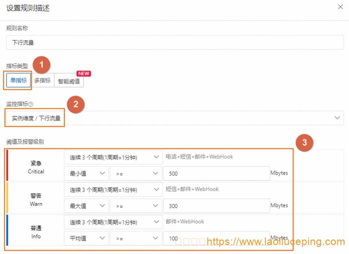 配置单个指标监控和配置多个指标监控:
